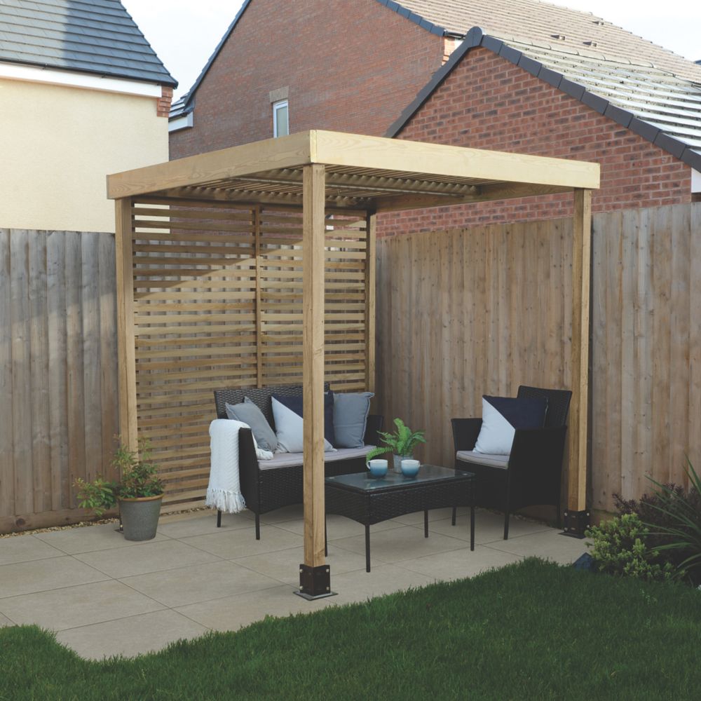 Forest Pergola With 2 Side Infills Natural Timber 1970 X 1970 X 2045mm Pergolas Screwfix Com